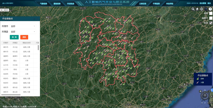 为提高人工影响天气信息综合管理能力和作业指挥能力,设计开发了基于气象大数据云平台的人工影响天气精准作业指挥与展示系统。系统基于国内自主研发的GIS平台DMGIS,集成湖南省高分遥感地理信息数据、人影信息数据以及气象监测数据,实现湖南人影作业全域精细化三维地理场景的漫游展示,人影作业飞行轨迹回放,作业效果评估,以及人影、气象信息空间可视化分析展示等功能,同时系统可实现三维GIS的基本功能。系统的建设为湖南人影业务完全三维空间GIS可视化和安全作业提供了技术支持。
